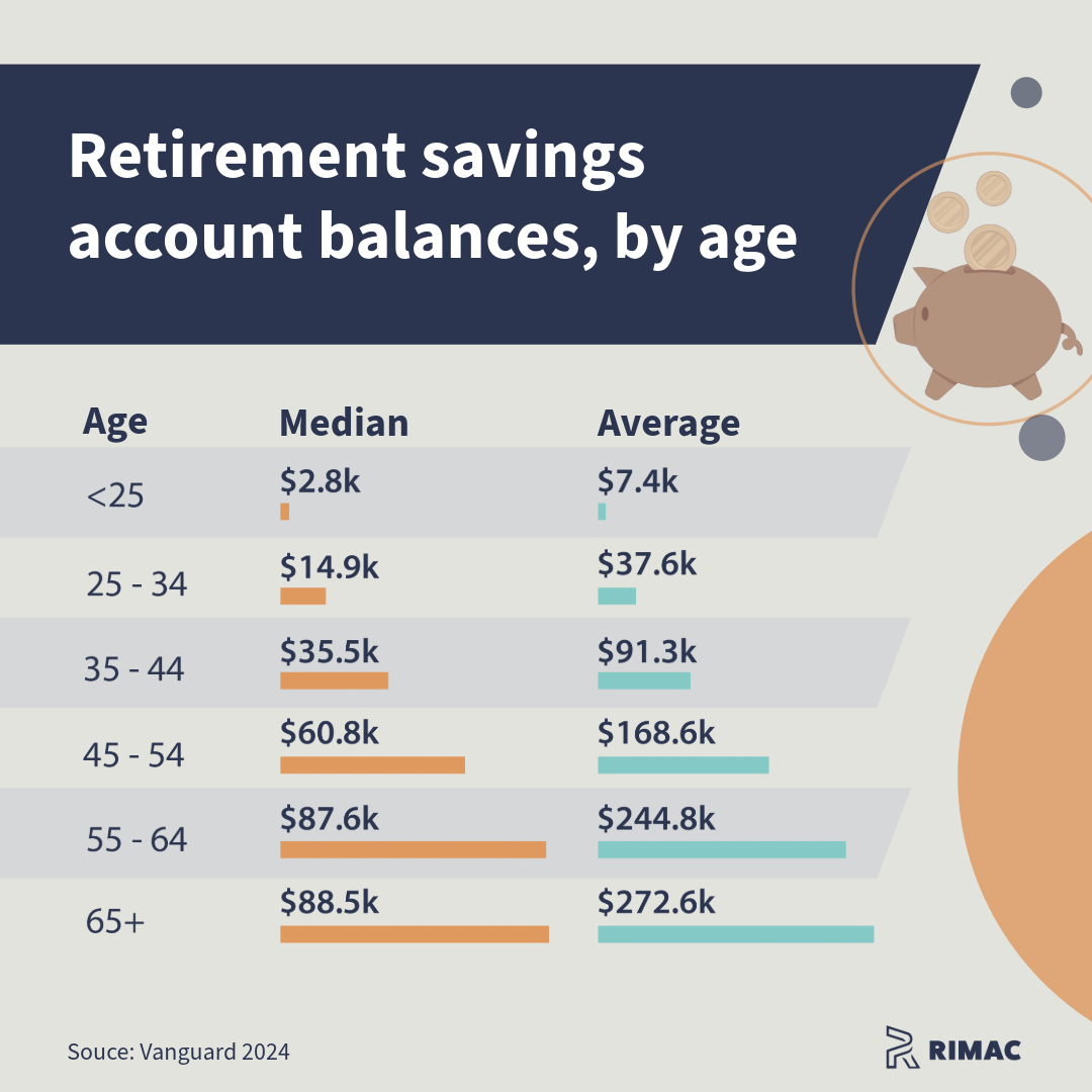 Besides age, many factors influence retirement savings, such as income and how long a person has worked for a company. Older employees who have been working longer tend to have higher account balances than employees who are at the beginning of their careers. It is advisable not to be fixated on savings balances but rather to focus on factors that investors can control such as expenses, investment choices and the savings rate (typically between 12 - 15% including employercontributions). This rate could be challenging for many, especially those who are starting out so sticking to at least to get the employer’s full match would be a first step.